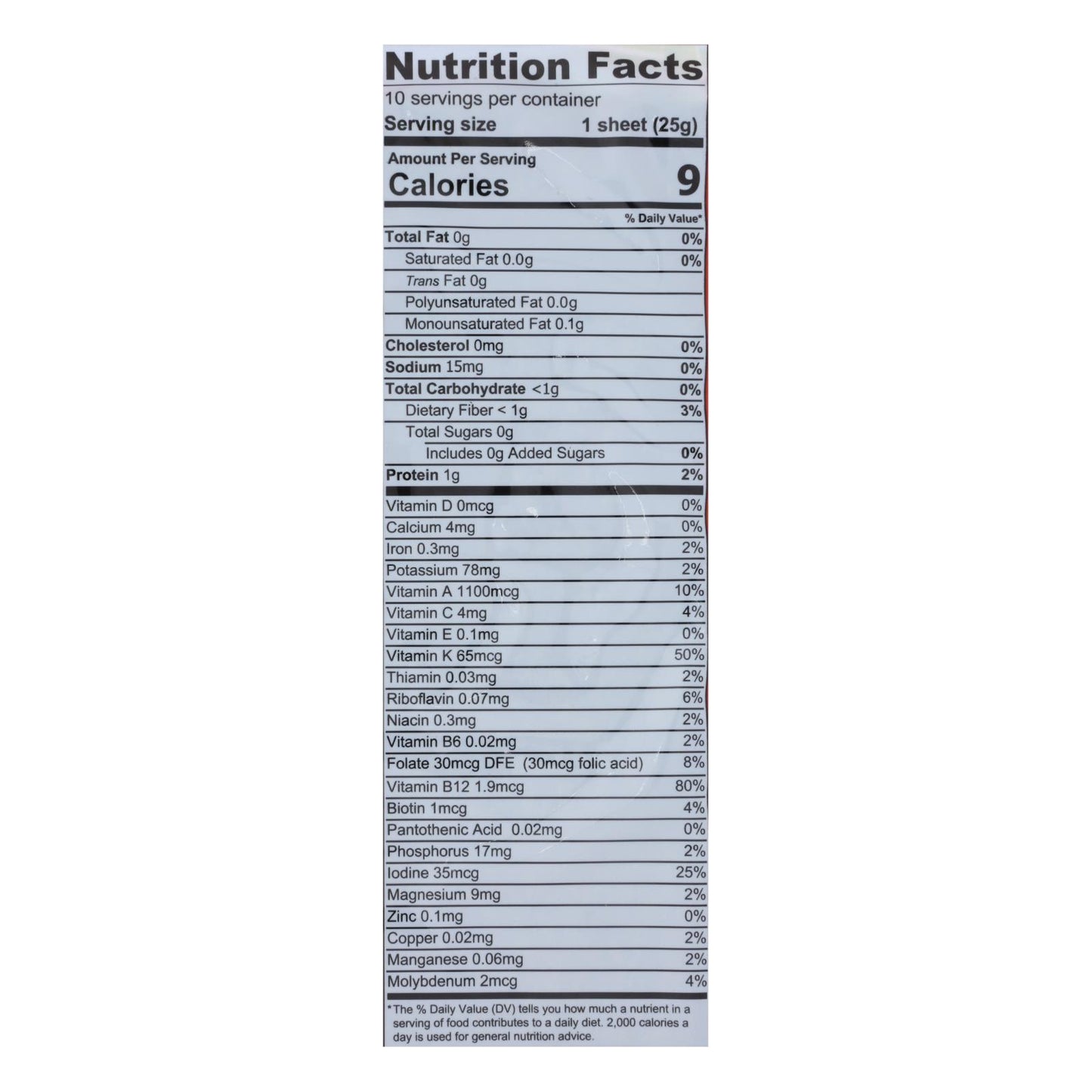 Emerald Cove Organic Pacific Sushi Nori - Toasted - Silver Grade - 10 Sheets - Case of 6