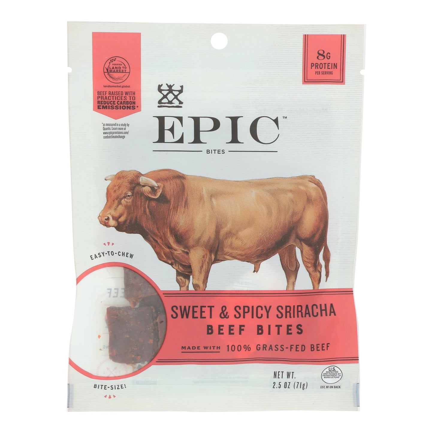 Epic - Jerky Bites - Sweet and Spicy Sriracha Tender Beef Steak - Case of 8 - 2.5 oz.