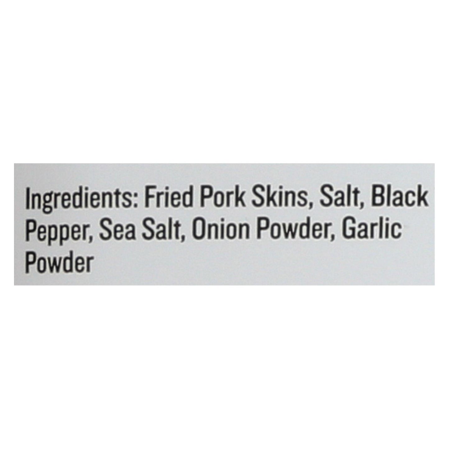 ingredients : fried pork skins;salt;black pepper;sea salt;onion powder;garlic powder