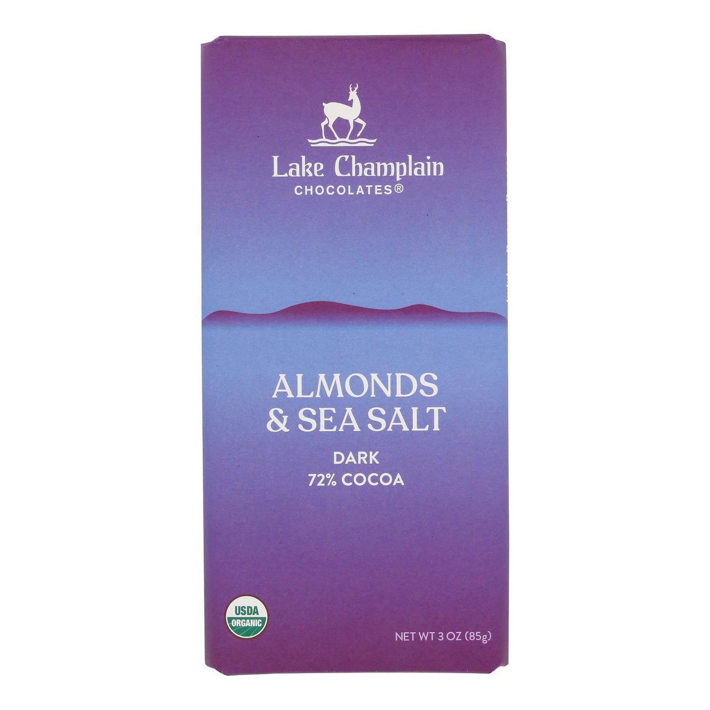 Lake Champlain Chocolates Chocolate Bar - Almonds & Sea Salt. 72% Cocoa Dark. - Case of 12 - 3 oz.