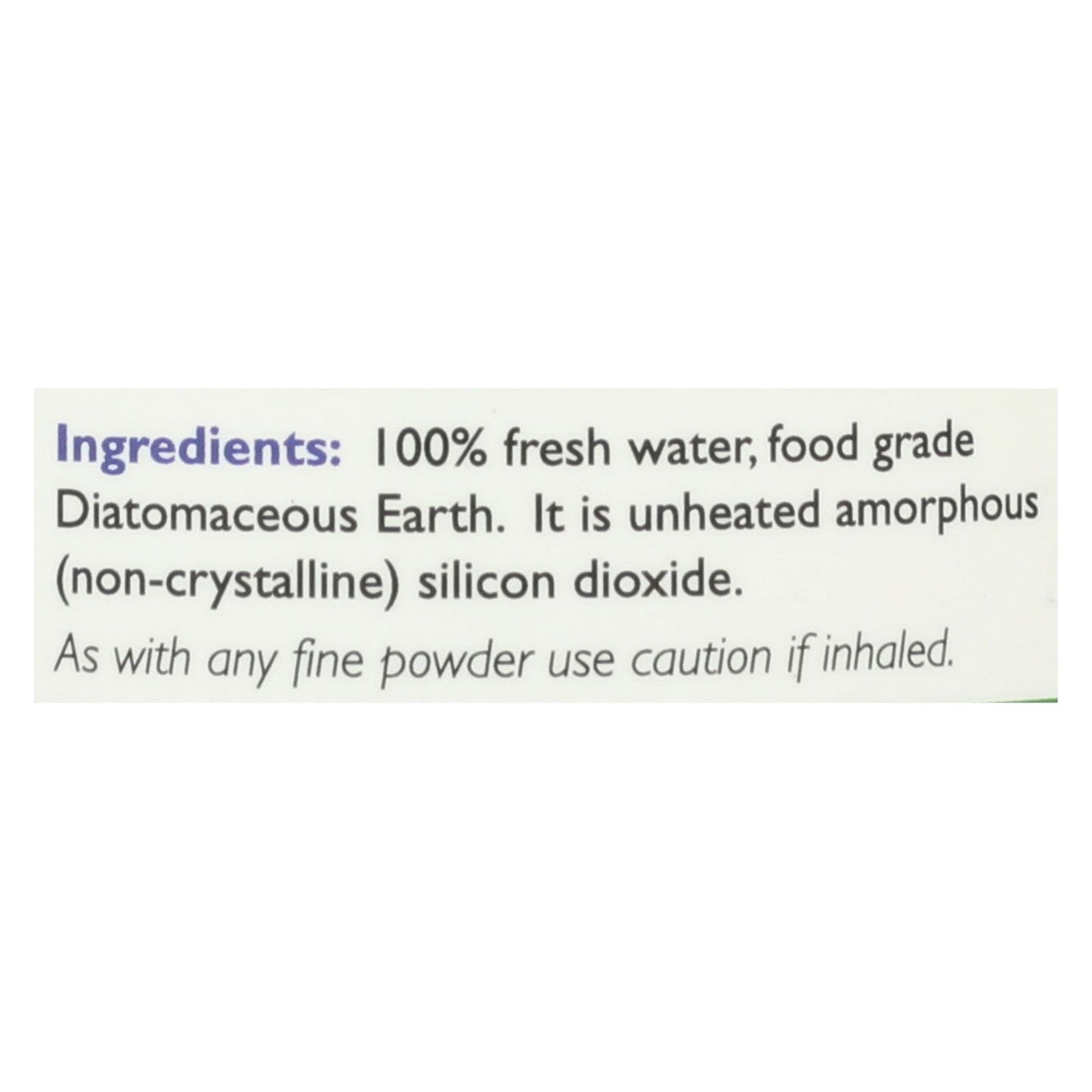 ingredients : 100% fresh water;food grade diatomaceous earth. It is unheated amorphous;non-crystalline;silicon dioxide