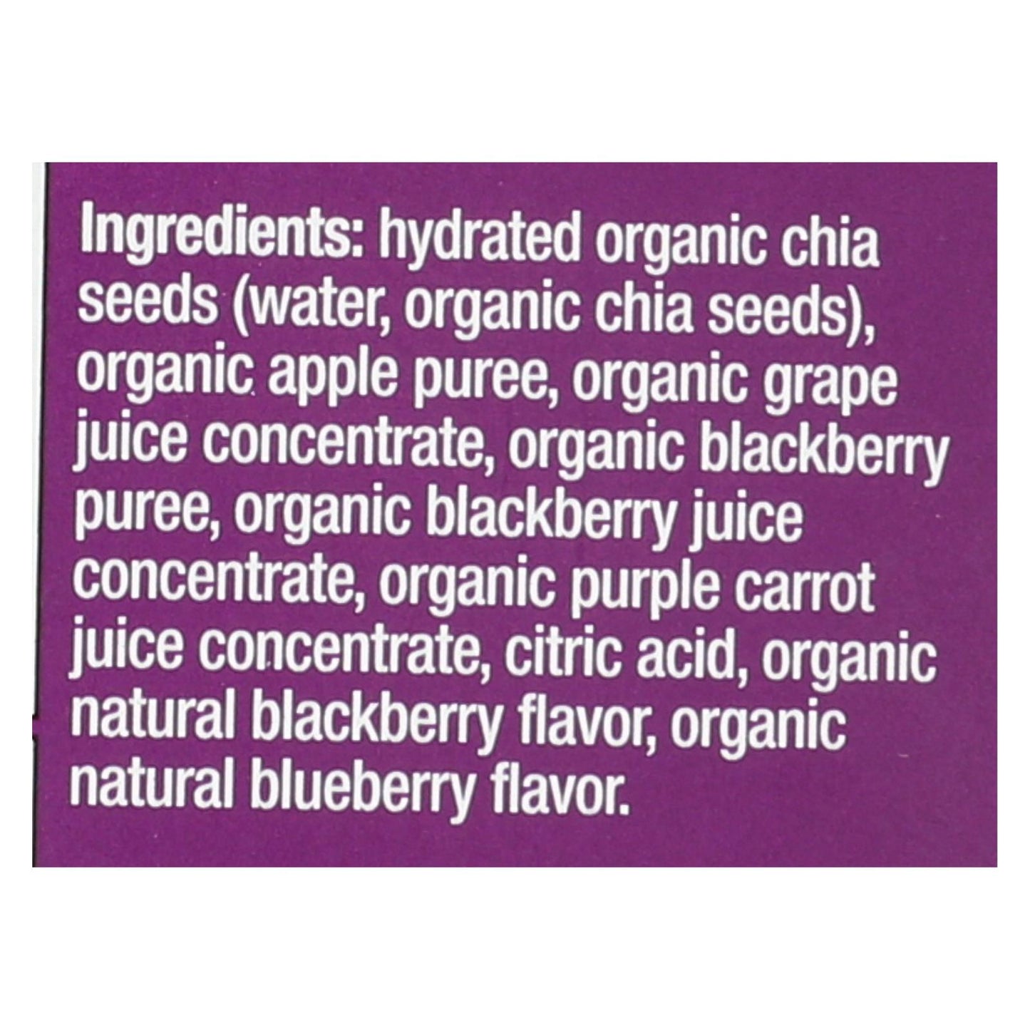 ingredients : hydrated organic chia seeds (water, organic chia seeds);organic apple puree;organic grape juice concentrate;organic blackberry puree;organic blackberry juice concentrate;organic natural flavors;organic purple carrot juice concentrate;citric acid