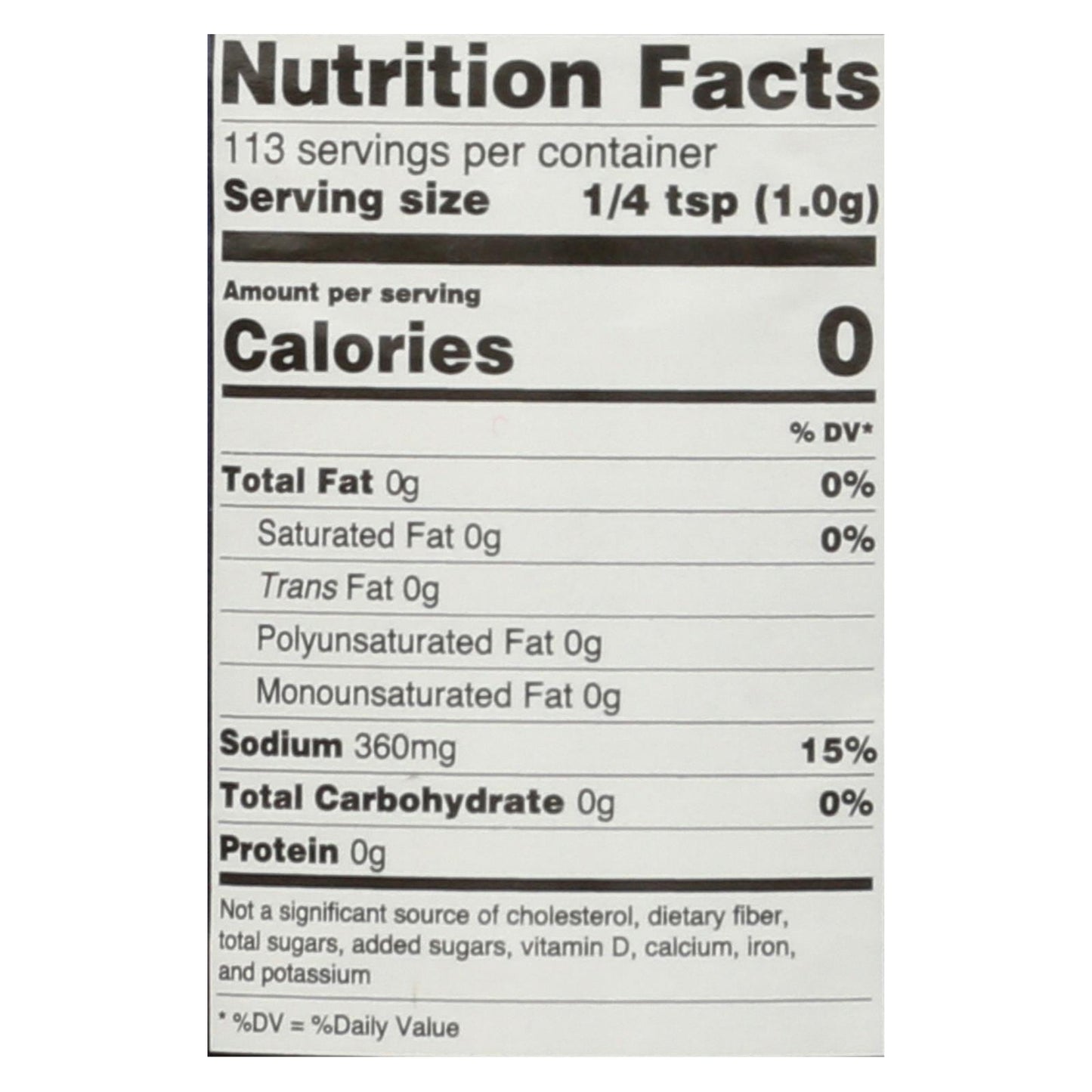 ingredients : salt crystals;earth and sea salt;vegetable mixture;alfalfa;celery;onion;carrot;parsley;spinach;kelp;beet root;soy sauce;water;soybeans;salt;alcohol;hydrolyzed soy protein;no added msg;molasses and dill seed