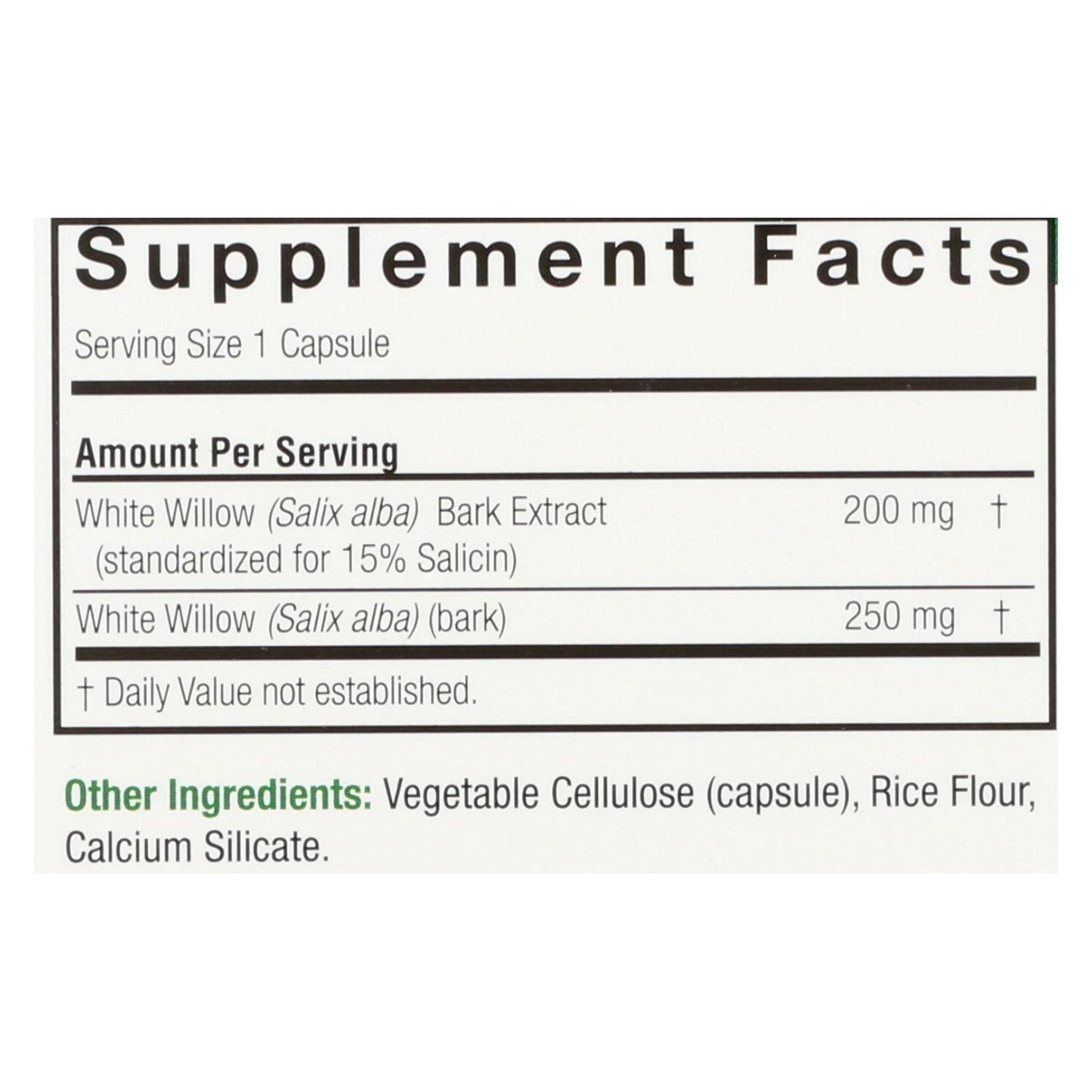 Nature's Answer - White Willow Bark Standardized - 60 Vcaps