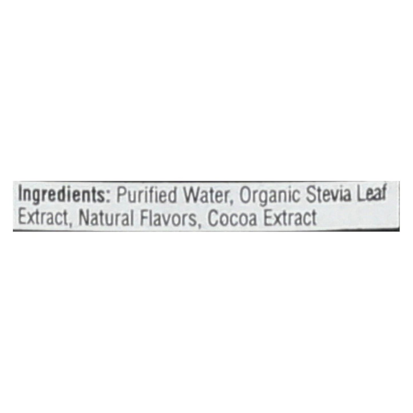 ingredients : purified water;cocoa extract;organic stevia leaf extract;natural flavors