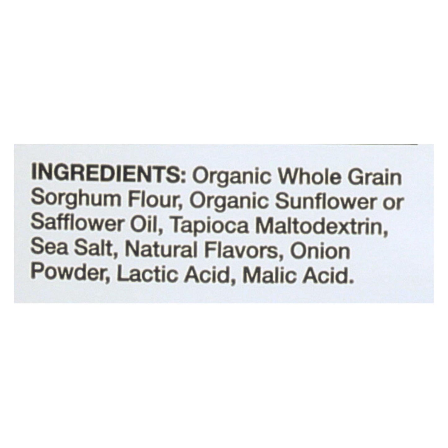 ingredients : organic whole grain sorghum flour;organic sunflower or safflower oil;tapioca maltodextrin;sea salt;natural flavors;onion powder;lactic acid;malic acid
