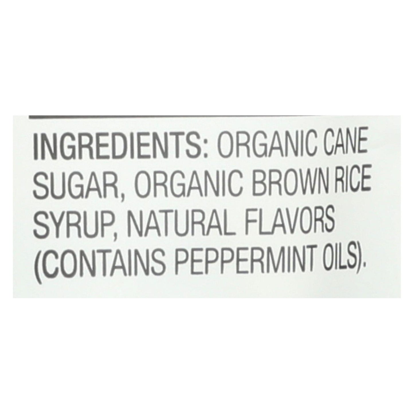 ingredients : organic cane sugar;organic brown rice syrup;natural flavors;contains peppermint oils