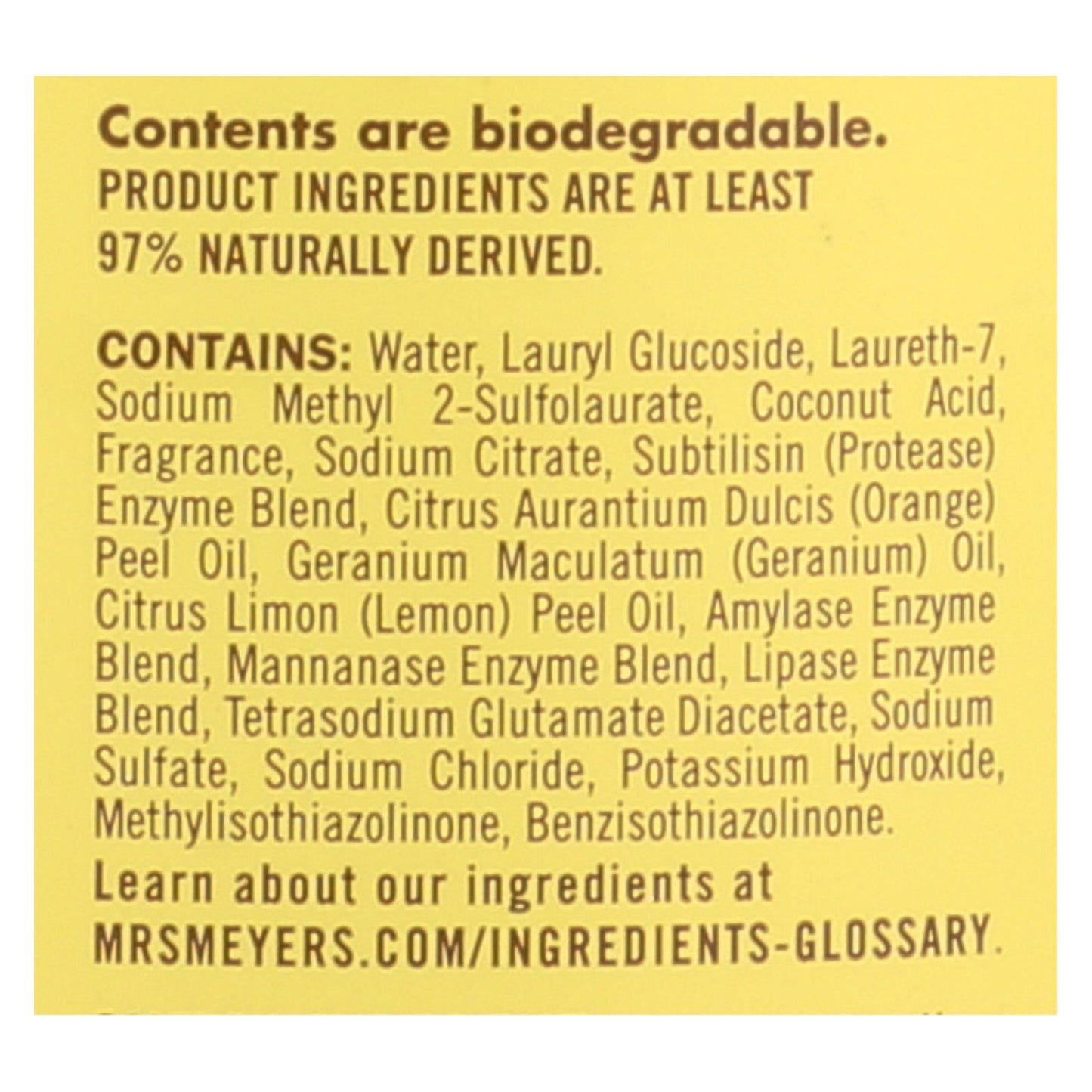 ingredients : contains: water, lauryl glucoside, laureth-7, sodium methyl 2-sulfolaurate, coconut acid, fragrance, sodium citrate, subtilisin (protease) enzyme blend, citrus aurantium dulcis (orange) peel oil, geranium maculatum (geranium) oil, citrus limon (lemon) peel oil, amylase enzyme blend, mannanase enzyme blend, lipase enzyme blend, tetrasodium glutamate diacetate, sodium sulfate, sodium chloride, potassium hydroxide, methylisothiazolinone, benzisothiazolinone