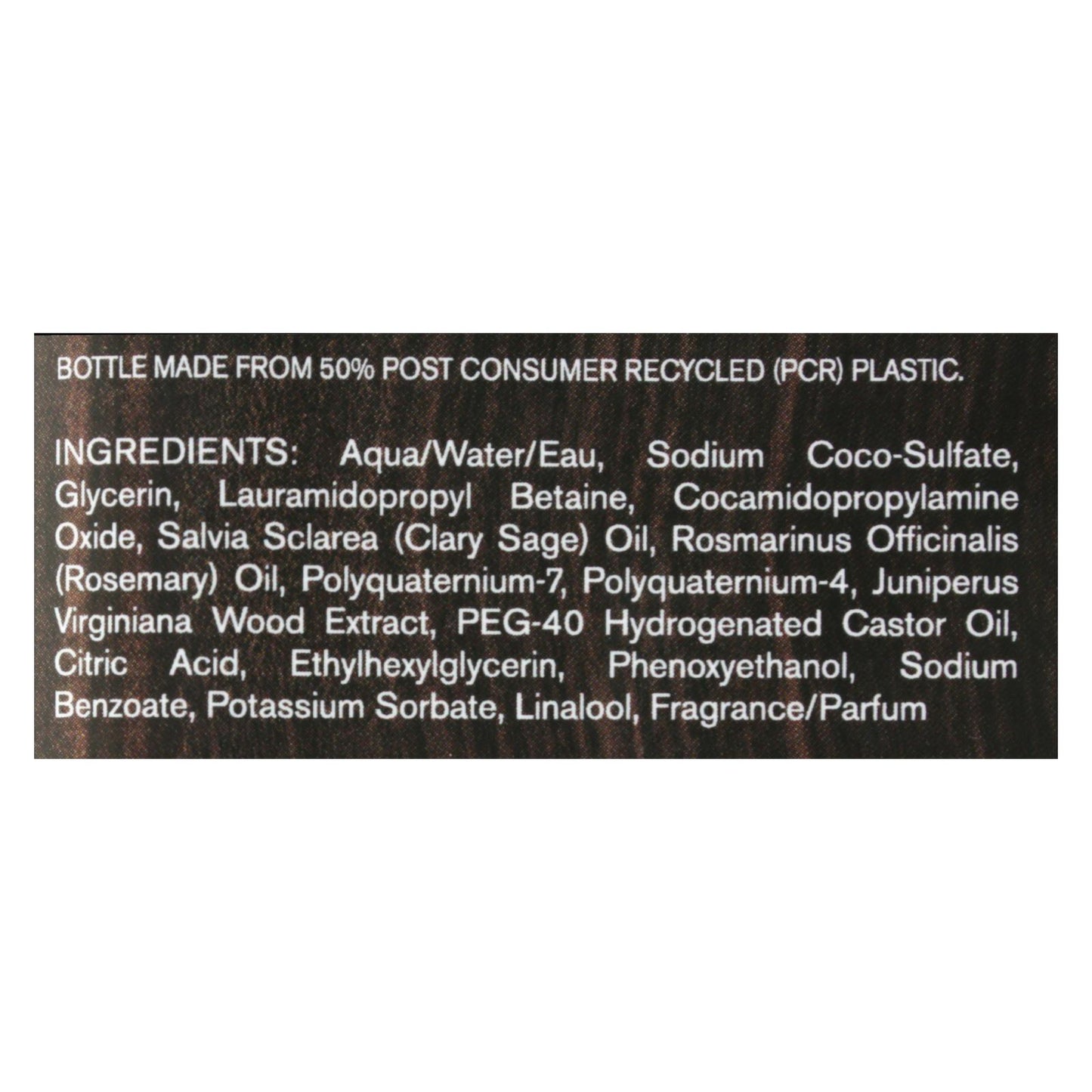 ingredients : aqua/water/eau;sodium coco-sulfate;glycerin;lauramidopropyl betaine;cocamidopropylamine oxide;salvia sclarea;clary sage;oil;rosmarinus officinalis;rosemary;polyquaternium-7;polyquaternium-4;juniperus virginiana wood extract;peg-40 hydrogenated castor oil;citric acid;ethylhexylglycerin;phenoxyethanol;sodium benzoate;potassium sorbate;linalool;fragrance/parfum