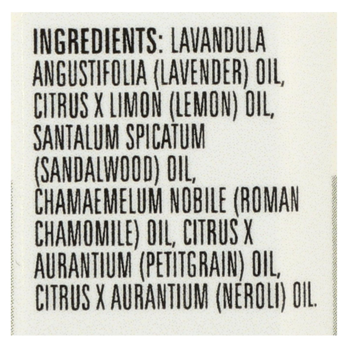 ingredients : lavandula angustifolia;lavender;oil;citrus x limon;lemon;santalum spicatum;sandalwood;chamaemelum nobile;roman chamomile;citrus x aurantium;petitgrain;neroli