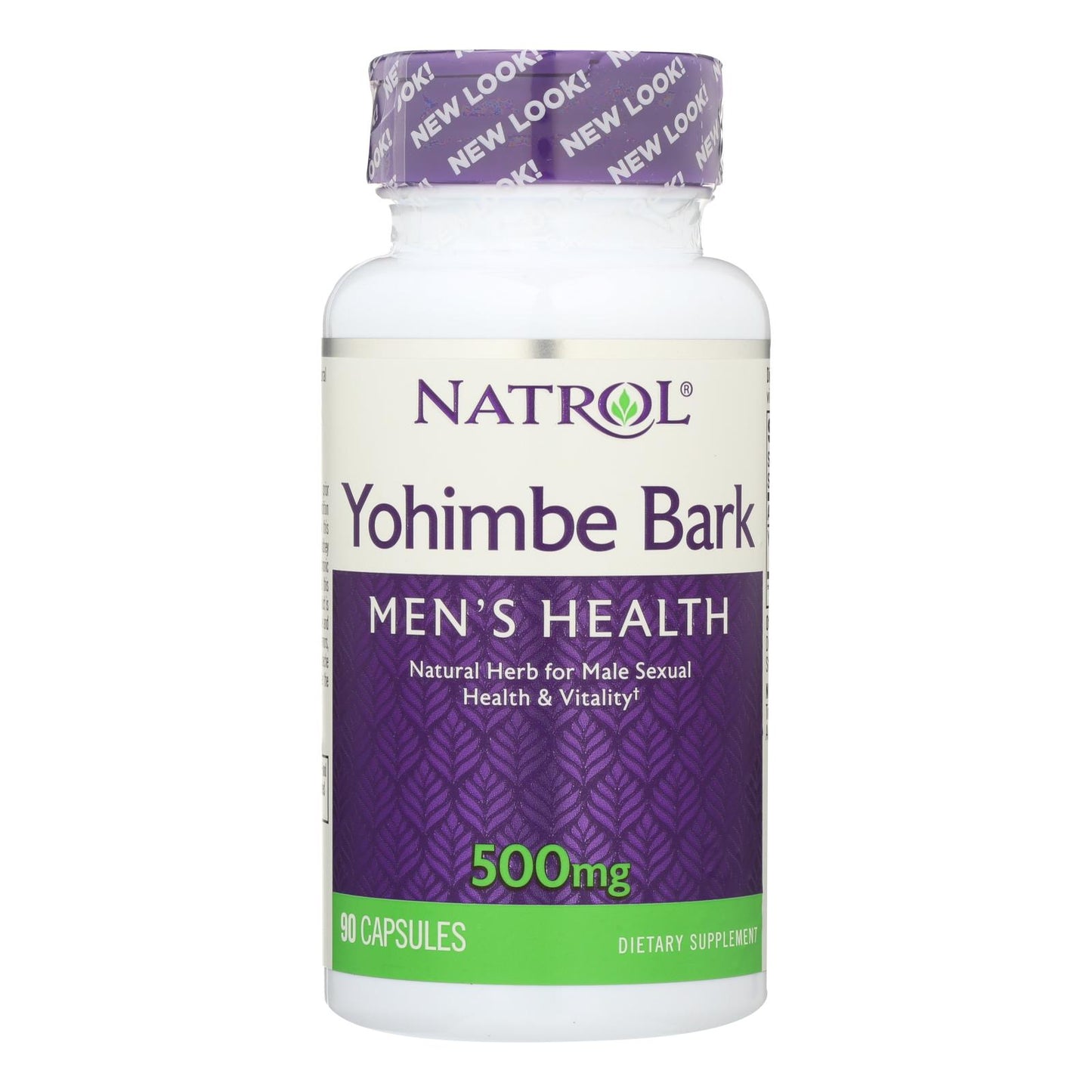 Dietary Supplement. Promotes male sexual health & vitality. Natrol Yohimbe Bark provides traditional herbal support for optimal male sexual health, vitality and potency. www.natrol.com. No milk, egg, fish, crustacean shellfish, tree nuts, wheat, peanuts, soybeans, yeast, artificial flavors, added sugar, starch or preservatives. (These statements have not been evaluated by the Food and Drug Administration. This product is not intended to diagnose, treat, cure or prevent any disease.)