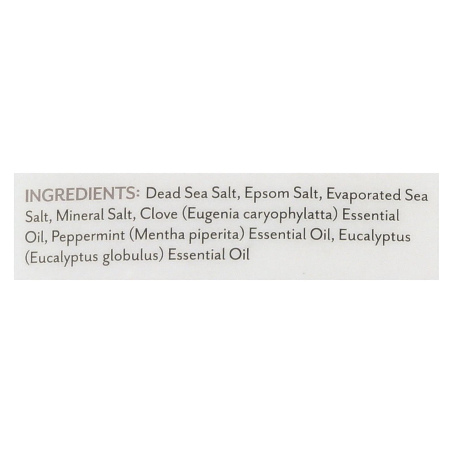 ingredients : dead salt;salt;epson salt;evaporated sea salt;mineral salt;clove;eugenia caryophylatta;essential oil;peppermint;mentha piperita;eucalyptus;eucalyptus globulus