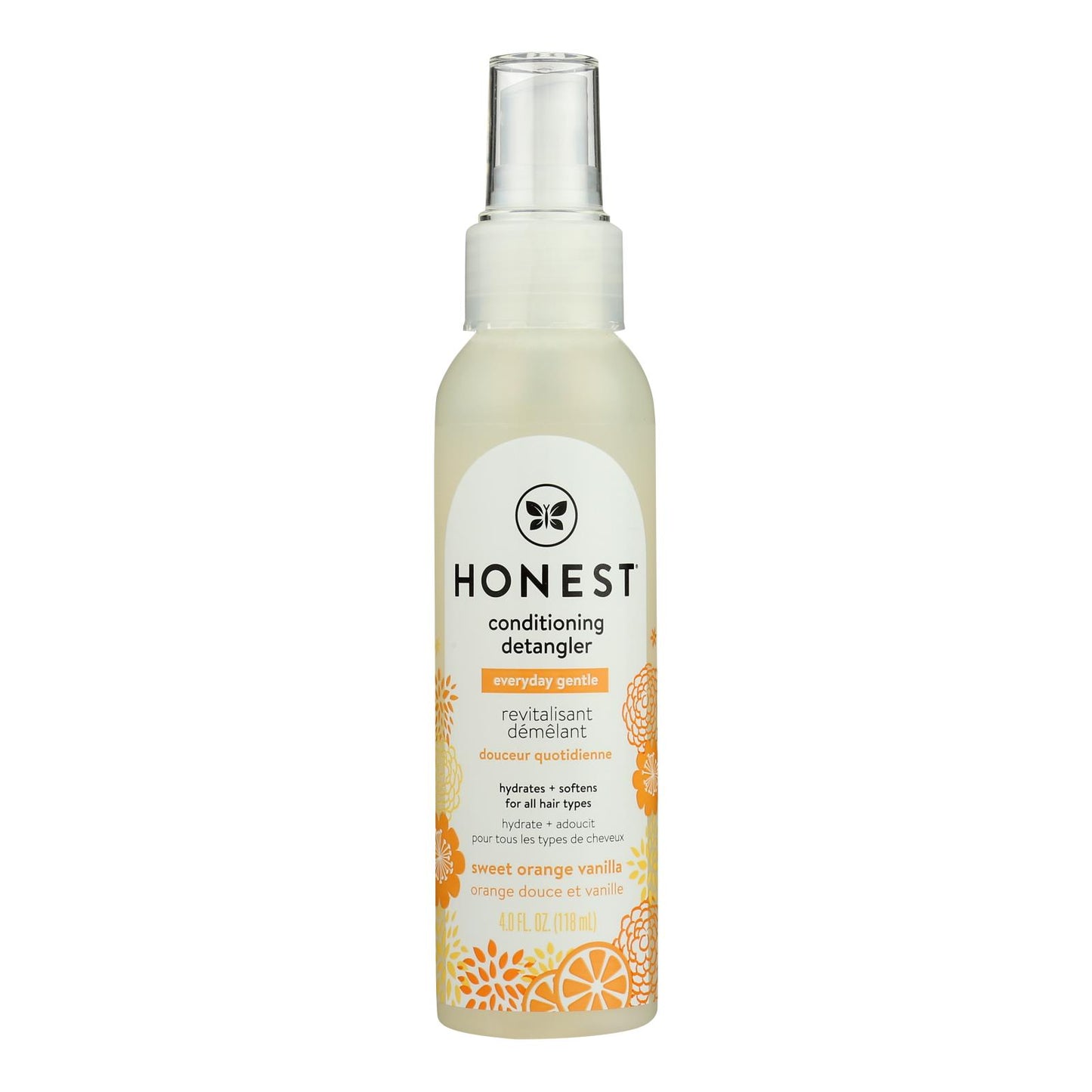 THE HONEST COMPANY CONDITIONING DETANGLER SWEET ORANGE VANILLA LEAVE-IN HAIR CONDITIONER & FORTIFYING SPRAY IS MADE WITHOUT SULFATES, PARABENS, DYES OR PHTHALATES. THE 4 FL. OZ. BOTTLE CONTAINS A VEGAN LEAVE-IN CONDITIONER CONDITIONING DETANGLER DOES NOT CONTAIN ANIMAL BY-PRODUCTS, AND WE DO NOT TEST ON ANIMALS.