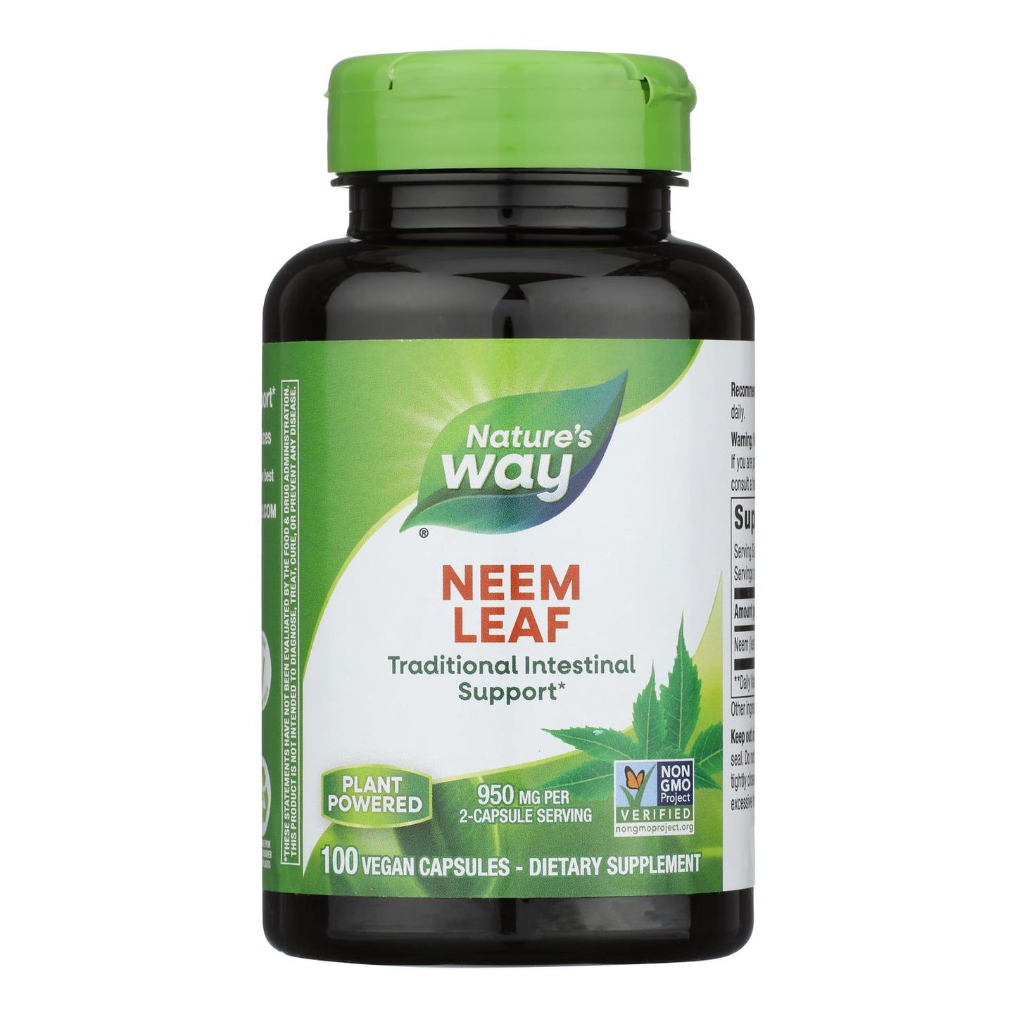 NATURE’S WAY NEEM LEAF 475 MG, CLEANSE/DETOX IS A DIETARY SUPPLEMENT FROM INDIA TRADITIONALLY USED FOR PURIFYING AND CLEANSING. EACH BOTTLE OF 100 VEGETARIAN CAPSULES CONTAINS 50 SERVINGS. OUR DIETARY SUPPLEMENT IS GLUTEN-FREE AND NON-GMO PROJECT VERIFIED. NEEM LEAF DOES NOT CONTAIN ARTIFICIAL COLORS, ARTIFICIAL FLAVORS, ARTIFICIAL PRESERVATIVES OR YEAST.