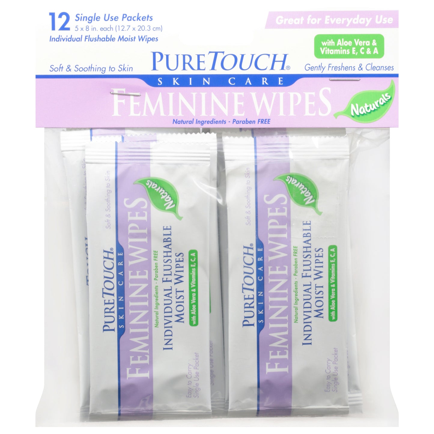Puretouch Individual Flushable Moist Feminine Wipes - 12 Packets