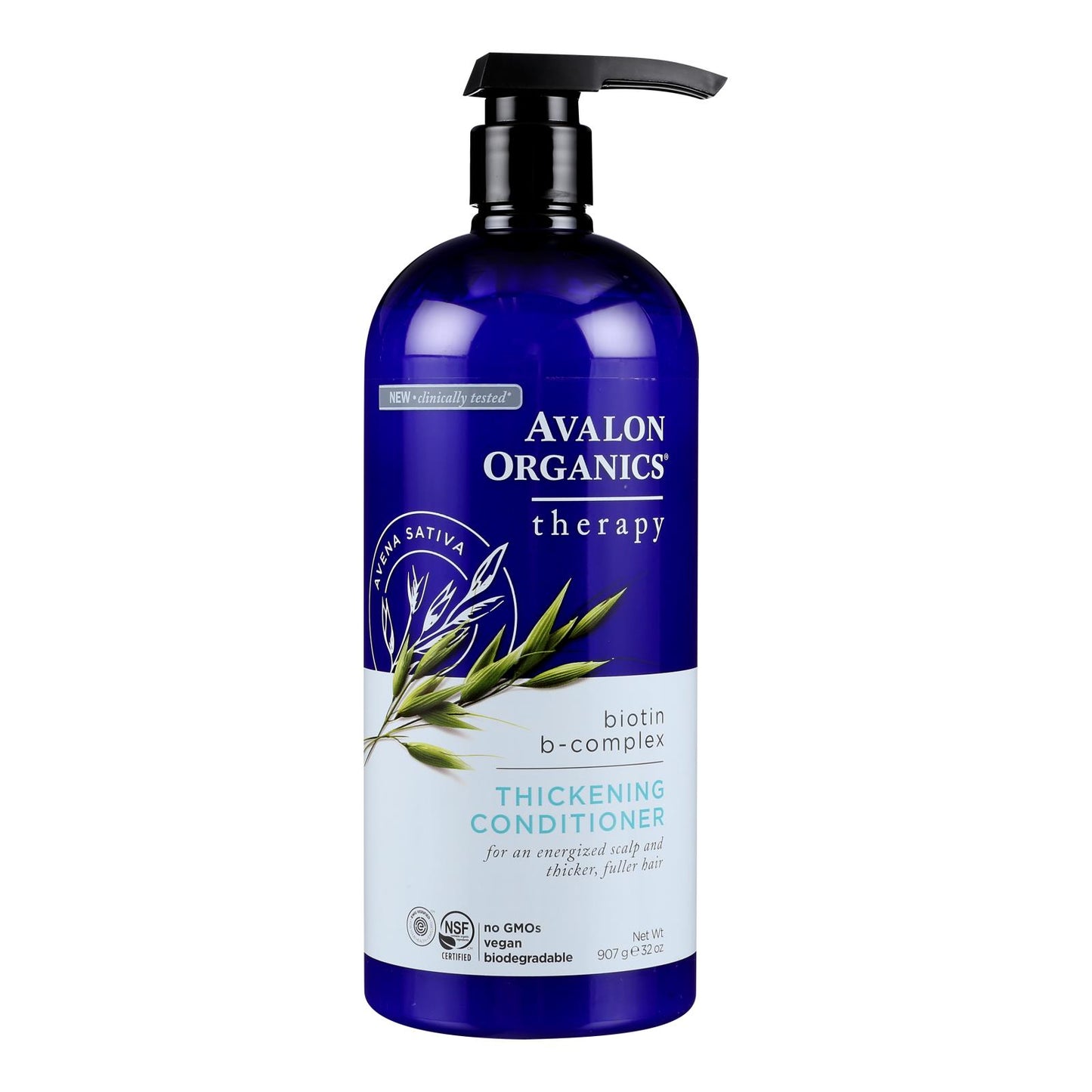 DESIGNED TO DELIVER VITAMINS AND ESSENTIAL NUTRIENTS TO HAIR, AVALON ORGANICS BIOTIN B-COMPLEX THICKENING CONDITIONER STRENGTHENS STRANDS AND PROVIDES CRITICAL MOISTURE TO RESTORE NATURAL ELASTICITY. A CAREFULLY BALANCED BLEND OF BIOTIN, SAW PALMETTO, QUINOA PROTEIN AND VITAMIN E WORK IN HARMONY TO HELP BUILD BODY IN FINE/THINNING HAIR, STIMULATE THE SCALP TO ENCOURAGE HAIR GROWTH, STRENGTHEN HAIR STRANDS AND CLEANSE AND NOURISH HAIR FROM FOLLICLE THROUGH ENTIRE SHAFT. THE RESULT IS HAIR THAT FEELS THICKER AND SOFTER WITH ADDED VOLUME. INCLUDES ONE 32 OZ. BOTTLE OF AVALON ORGANICS BIOTIN B-COMPLEX THICKENING CONDITIONER. DEEP ROOTED BEAUTY IS THE ESSENCE OF THE AVALON ORGANICS BRAND. GUIDED BY THE INFINITE WISDOM OF NATURE AND THE KNOWLEDGE THAT ALL BEAUTY BEGINS WITH THE EARTH, THE AVALON ORGANICS BRAND HARNESSES THE PURE BENEFITS IN BOTANICALS TO CREATE PRODUCTS THAT CONTRIBUTE TO A HOLISTIC LIFESTYLE OF HEALTH, WELLNESS AND SUSTAINABILITY.