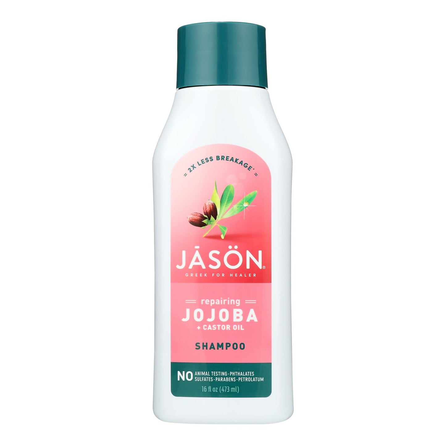 Since 1959. Helps promote healthy hair. No parabens. Sulfates. Petrolatum. Artificial fragrances. Phthalates. 2x Less breakage (Based on instrumental testing: healthier hair = more manageable, softness, detangling benefits, smooth, lower friction and hydrated feel when used as directed). Say hello to stronger, healthier hair (Based on instrumental testing: healthier hair = more manageable, softness, detangling benefits, smooth, lower friction and hydrated feel when used as directed) with every wash! This shampoo gently cleanses and nourishes hard-to-grow hair for gorgeous length and strength. Infused with moisture-rich Coconut, Jojoba and Castor Seed Oils and strengthening Pro-Vitamin B5 and Quinoa Protein, this moisturizing shampoo helps promote healthy hair and prevent breakage and split ends. Biodegradable formula with tested results (Based on instrumental testing: healthier hair = more manageable, softness, detangling benefits, smooth, lower friction and hydrated feel when used as directed). Protects for 2x less breakage. Repairs up to 80% of split ends. www.jason-personalcare.com. Questions or comments? Call 1 (877) Jason-01 or visit www.jason-personalcare.com. This bottle is made with 50% post-consumer resin. Cruelty-free. Please recycle. Say hello to stronger, healthier hair* with every wash! This shampoo gently cleanses and nourishes hard-to-grow hair for gorgeous length and strength. Infused with moisture-rich coconut, jojoba and castor seed oils and strengthening pro-vitamin B5 and quinoa protein, this moisturizing shampoo helps promote healthy hair and prevent breakage and split ends.