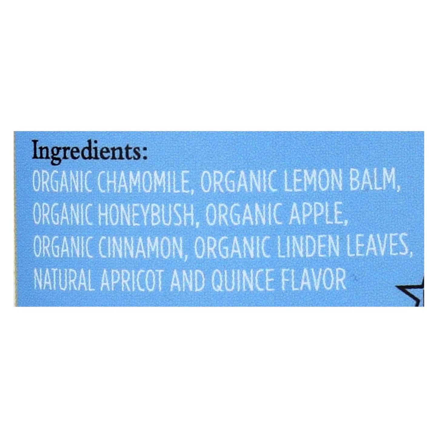 ingredients : organic chamomile;organic lemon balm;organic honeybush;organic apple;organic cinnamon;organic linden leaves;natural apricot and quince flavor