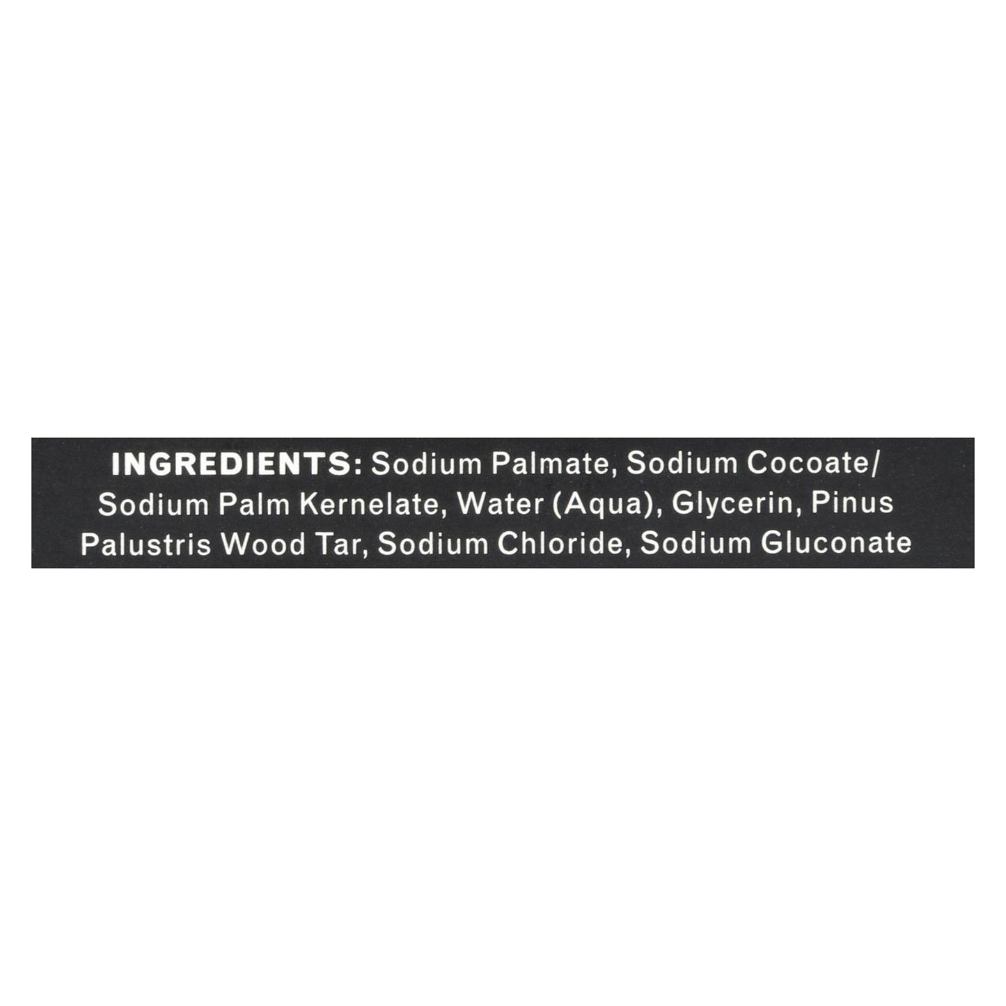 ingredients : sodium palmate;sodium cocoate/sodium palm kernelate;water;aqua;glycerin;pinus palustris wood tar;sodium chloride;sodium gluconate