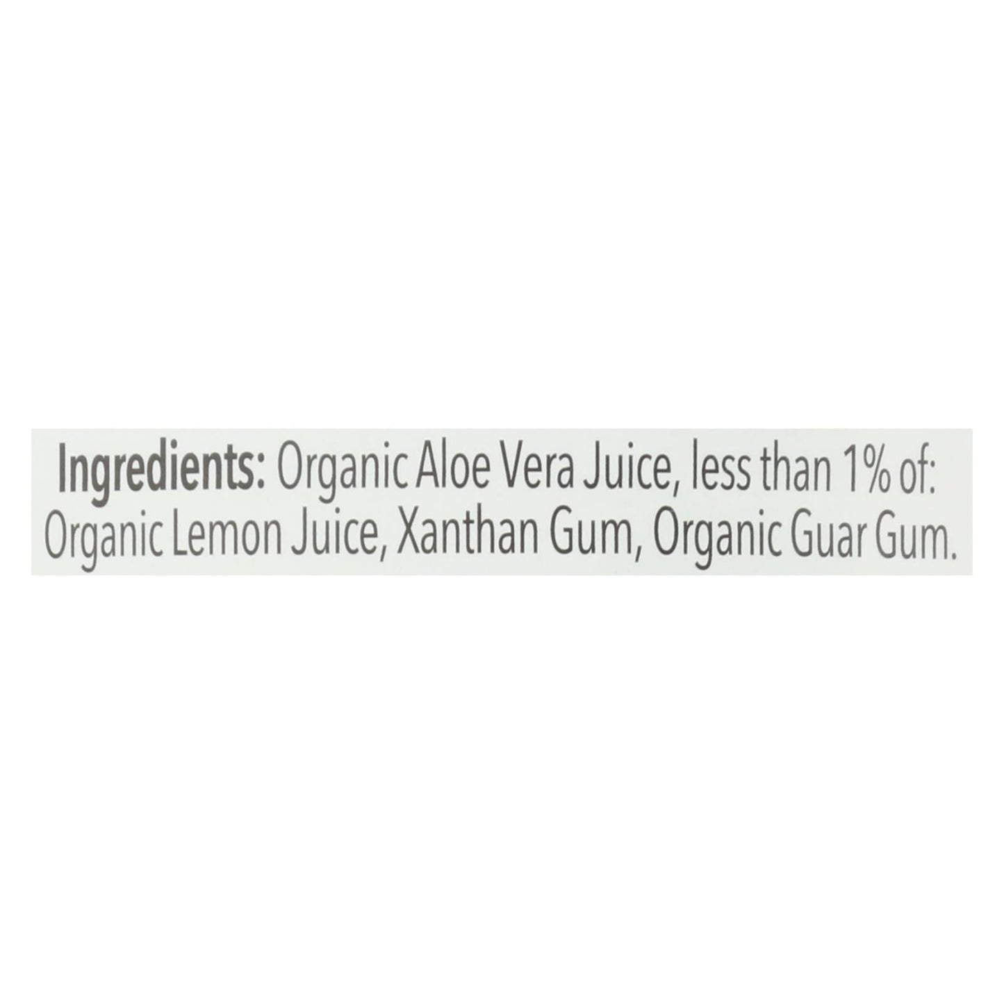 ingredients : organic aloe vera juice;less than 1% of: organic lemon juice, xanthan gum, organic guar gum