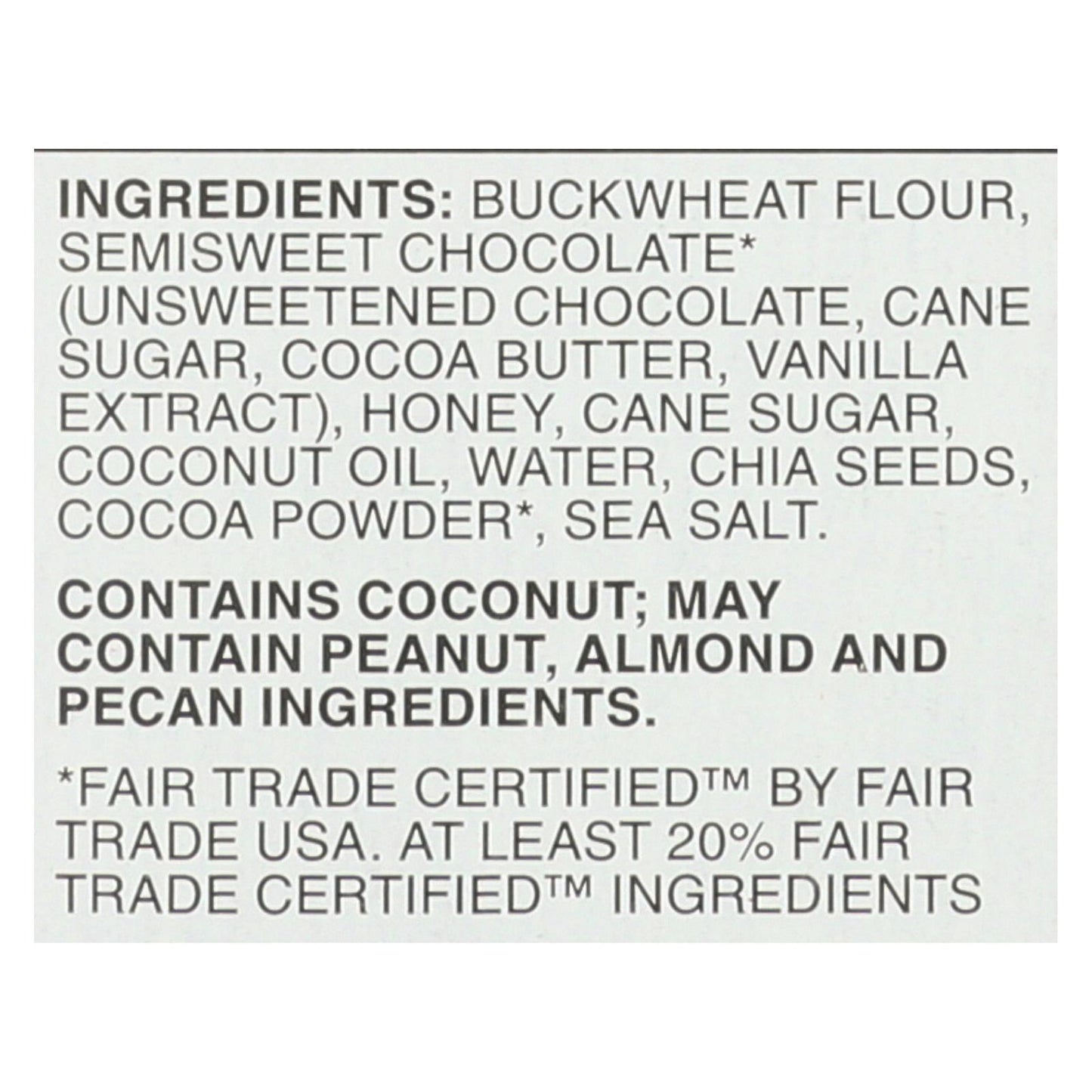 ingredients : buckwheat flour;semisweet chocolate (unsweetened chocolate, cane sugar, cocoa butter, vanilla extract);honey;cane sugar;coconut oil;water;chia seeds;cocoa powder;sea salt