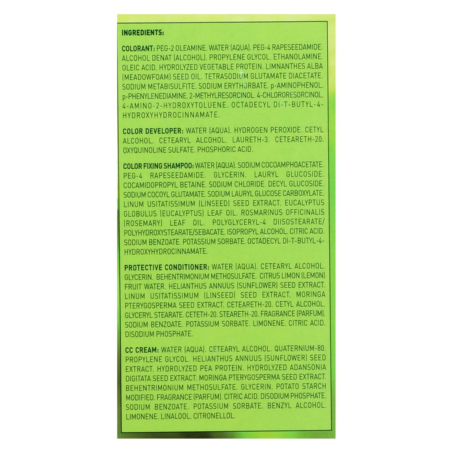 ingredients : cc cream: water;aqua;cetearyl alcohol;quaternium-80;propylene glycol. Helianthus annuus;sunflower;seed extract. Hydrolyzed pea protein. Hydrolyzed adansonia digitata seed extract. Moringa pterygosperma seed extract. Behentrimonium methosulfate. Glycerin. Potato starch modified. Fragrance;parfum;citric acid. Disodium phosphate. Sodium benzoate. Potassium sorbate. Benzyl alcohol. Limonene. Linalool. Citronellol;color developer: water;hydrogen peroxide. Cetyl alcohol. Cetearyl alcohol. Laureth-3. C