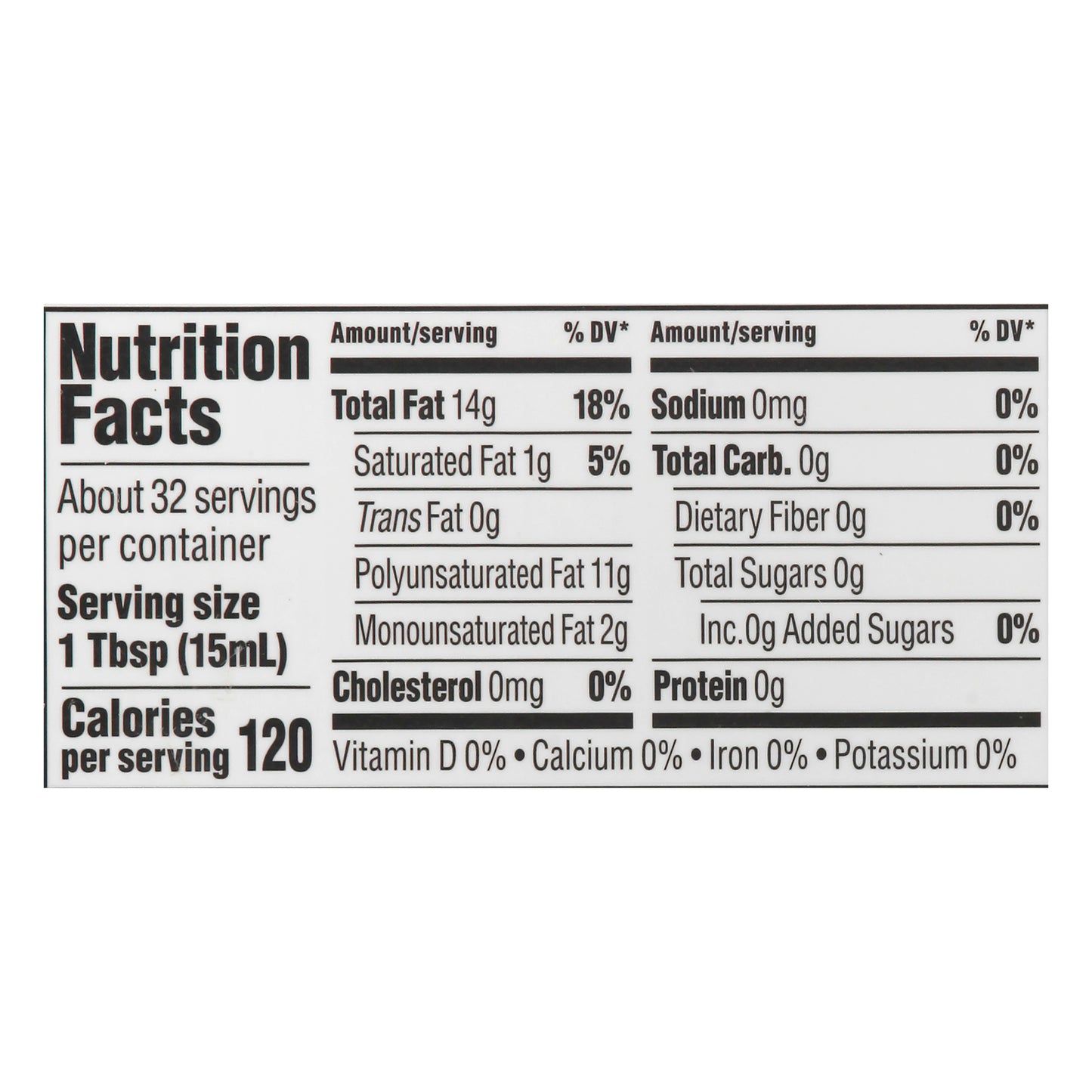 2.5g Omega-3 ALA (Alpha- linolenic Acid). 500 mg GLA (Gamma Linoleic Acid) per serving. Essential Omegas Per Tbsp: 7.0 g; Omega-6 LA; Linoleic Acid. 2.5 g; Omega-3 ALA; Alpha- linolenic Acid. 1.4 g; Omega-9; Oleic Acid. 500 mg; Omega-6 GLA; Gamma Linoleic Acid. 162 mg; Omega-3 SDA; Stearidonic Acid. USDA Organic. Certified Organic by: QAI (US-ORG-050). Organic. See nutrition information for total fat content. Not a low calorie food. Non GMO Project verified. nongmoproject.org. Nutiva nurture vitality consciously curating the world's finest organic, plant-based foods. Hemp seed oil has nature's ideal 3:1 omega-6 to omega-3 ratio. Unlike flax, hemp has valuable super omega-3 (SDA) and super omega-6 (GLA). Contains no hexane. Made without dairy, lactose or sweeteners. nutiva.com. For delicious recipes, visit nutiva.com. 1% sales go to regenerative agriculture. Please recycle. Non BPA. Product of Canada.