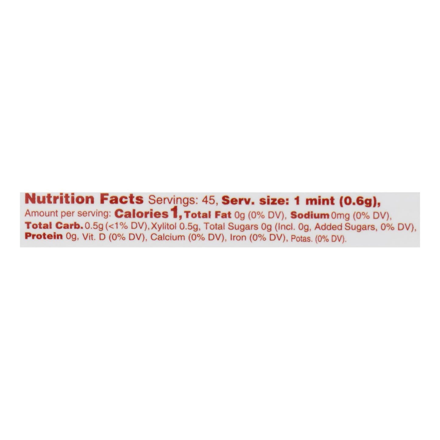 SPRY SUGARFREE CINNAMON MINTS ARE OUR DELICIOUS AND HEALTHY BOOSTERS TO YOUR DENTAL HEALTH. SWEETENED ONLY WITH XYLITOL, OUR PEPPERMINTS HELP REDUCE THE RISK OF TOOTH DECAY AND IMPROVE ORAL HEALTH BY REPLACING TOOTH-DECAYING SUGARS. OUR PRODUCT IS ALSO KOSHER. INCLUDED IS ONE 0.95 OZ. CONTAINER OF SPRY SUGARFREE CINNAMON MINTS.