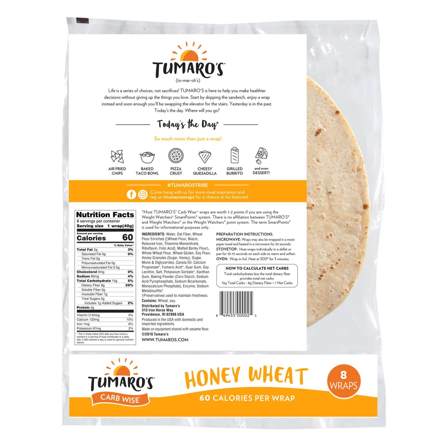 Tumaro'S 8-inch Honey Wheat Carb Wise Wraps - Case of 6 - 8 CT