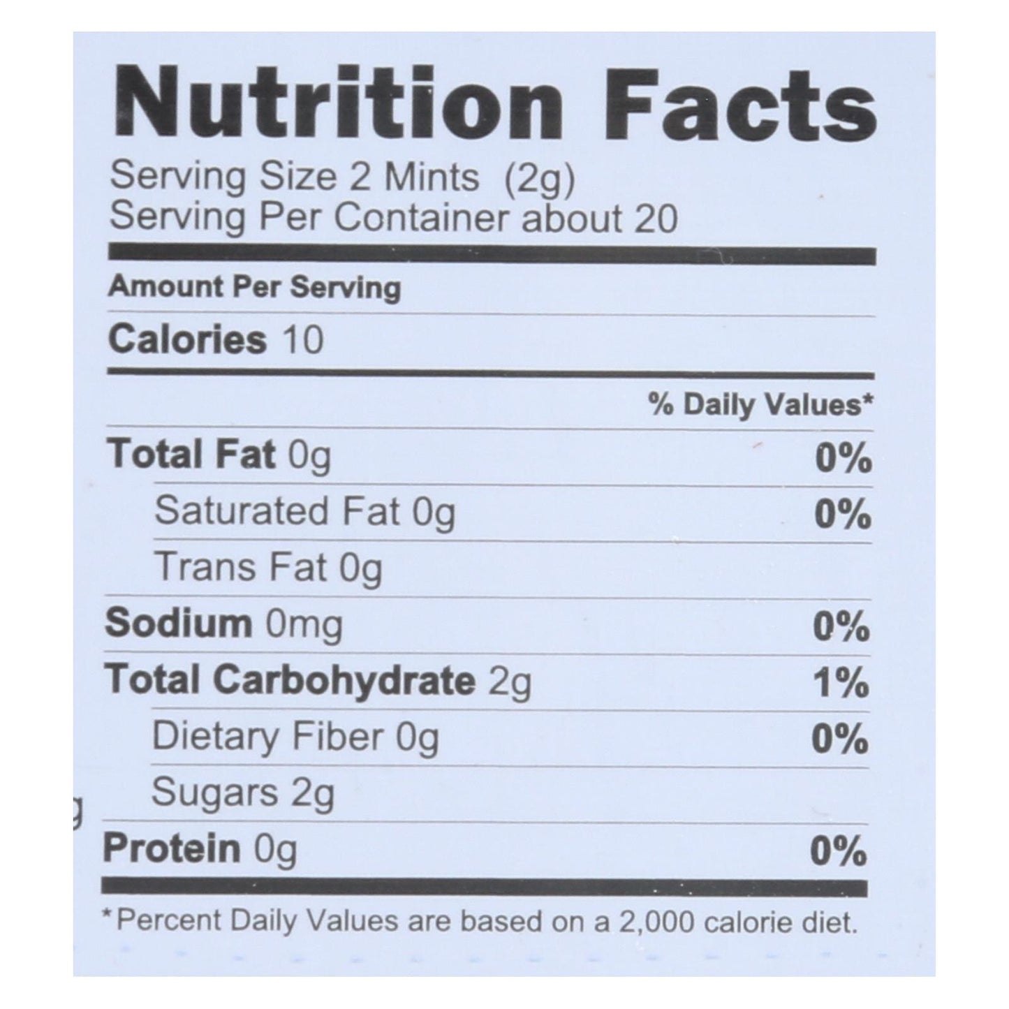 Vermints chai pastilles are a 100% usda-certified organic product. This 1.41 oz. Tin of vegan mints is also certified non-gmo, and they are a gluten-free, delicious way to freshen your breath. With only 2 g. Of sugar per serving, they are also kosher and nut-free. See nutrition facts panel for allergens.