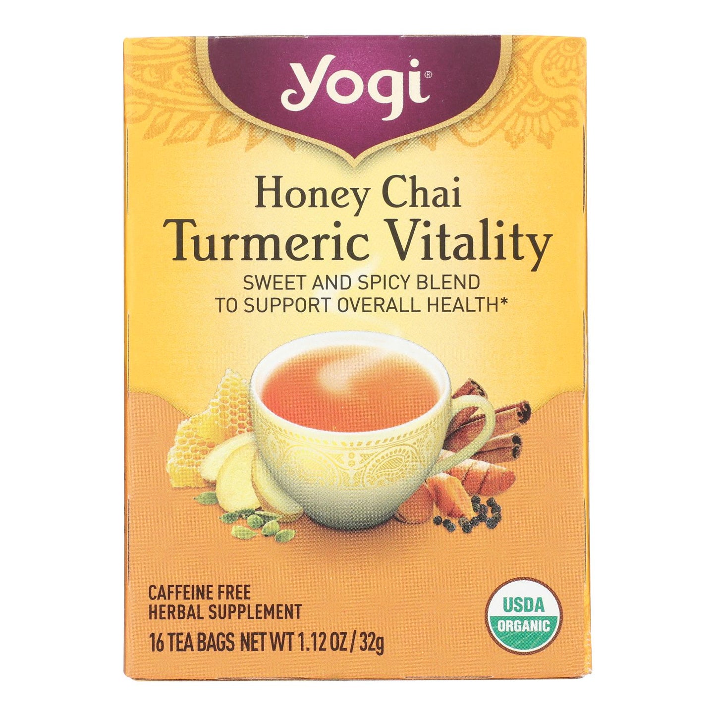 Yogi Tea - Organic - Honey Chai Turmeric - Case of 6 - 16 BAG
